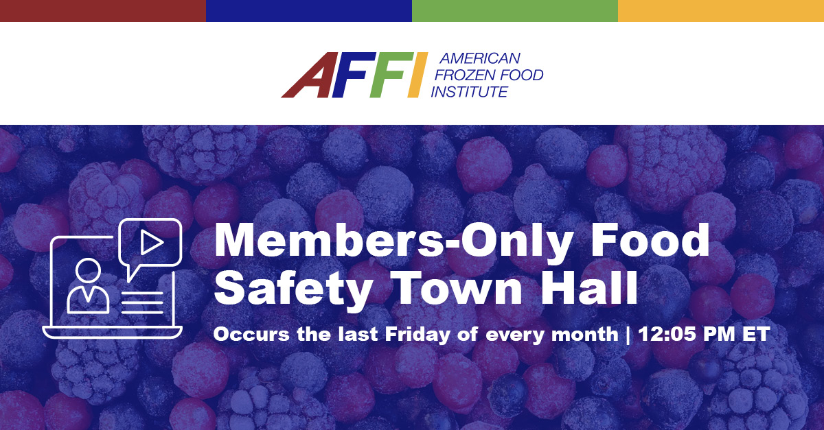 Join AFFI on Friday, August 28, 2026, at 12:05 PM ET for a members-only forum to share food safety news, information, research, and ideas relevant to the frozen food industry and its supply chain. These sessions, held on the last Friday of every month, will: